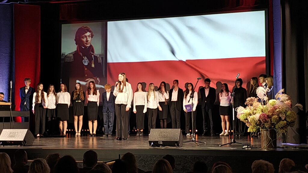 Następnie miała miejsce akademia przygotowana przez uczniów klas pierwszych. Było to dla nich szczególne wyzwanie – pierwszy publiczny występ w nowej szkole, wymagający przełamania tremy i zaprezentowania swoich umiejętności. Część artystyczna była opowieścią o życiu oraz wartościach Tadeusza Kościuszki. Recytacje, pieśni, fragmenty pamiętników i listów, przeplatane muzyką na żywo, stworzyły obraz człowieka, który – choć urodzony w skromnych warunkach – dzięki wytrwałości, pracy i odwadze stał się bohaterem narodów.